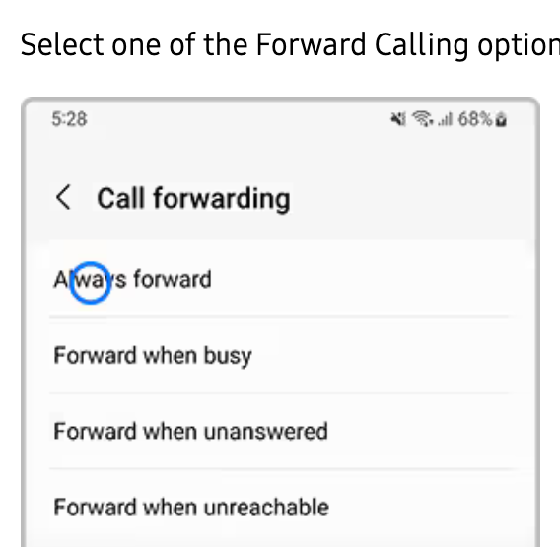 4. Choose Call Forwarding Option: Select the type of call forwarding you want: