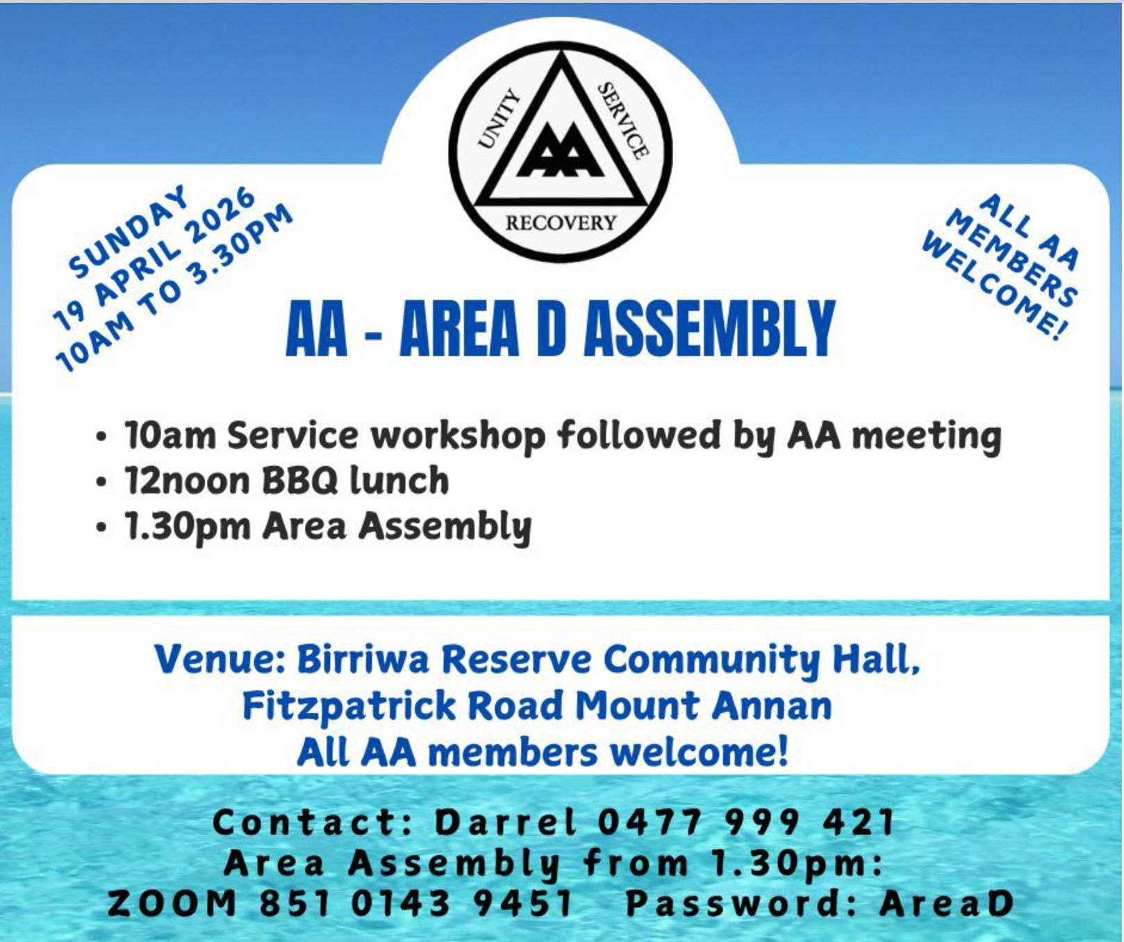 7. Come to the next Area D Assembly in Nowra and find out all the great things happening in AA!