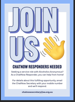 If you can offer your time, please email: chatnowsecretary@aa.org.au